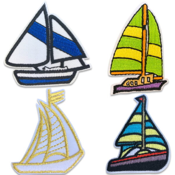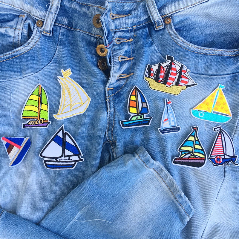 A bag containing 10 beautifully embroidered fabric patches featuring ships and boats. See product images for approximate sizes.