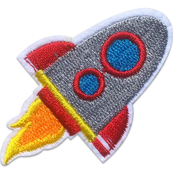 The Rocket Flyer is one of our stylish embroidered rockets to iron onto clothes and other fabrics. It’s perfect for mending clothes but also handy for labelling garments.