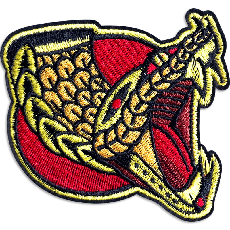 Cool snake measuring 8.9 x 9 cm, perfect for decorating t-shirts, jackets, or sweaters.
