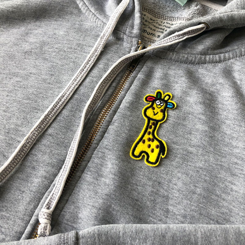 The giraffe has an iron-on backing, making it easy to attach to a pair of trousers or other fabrics.