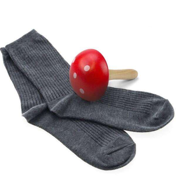 A darning mushroom is a helpful tool when repairing larger holes in fabrics and yarn. The convex shape is designed to stretch the fabric, preventing the stitches from pulling too tight or gathering.
