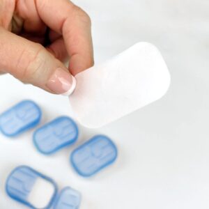 Practical soap sheets that dissolve into lather when in contact with water. Each case contains 20 lightly scented sheets – perfect for your bag, car or pocket. Lightweight and compact, ideal for travel or everyday use. The blue plastic case is reusable for other small items once the soap is used up.