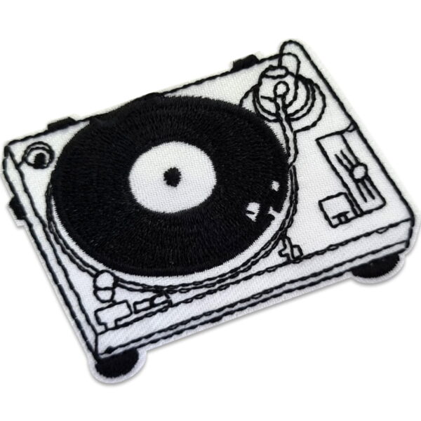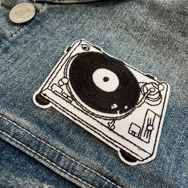 Patch featuring a cool vintage turntable design, measuring 7 x 5.2 cm. This patch is perfect for a beanie, jacket, or even some kind of case. An ironing guide is included with your purchase.